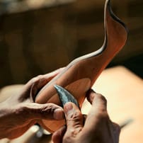 Bebek Suci, meaning 'purity' in Indonesian, has a peaceful, calming quality. A softly curved organic form becomes a sinuous line when viewed from the side, as the rosewood core frames Suci’s graceful silhouette.